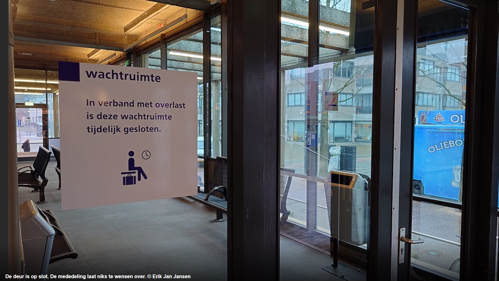 Wie op het station in Enschede wil wachten, staat voor een gesloten deur