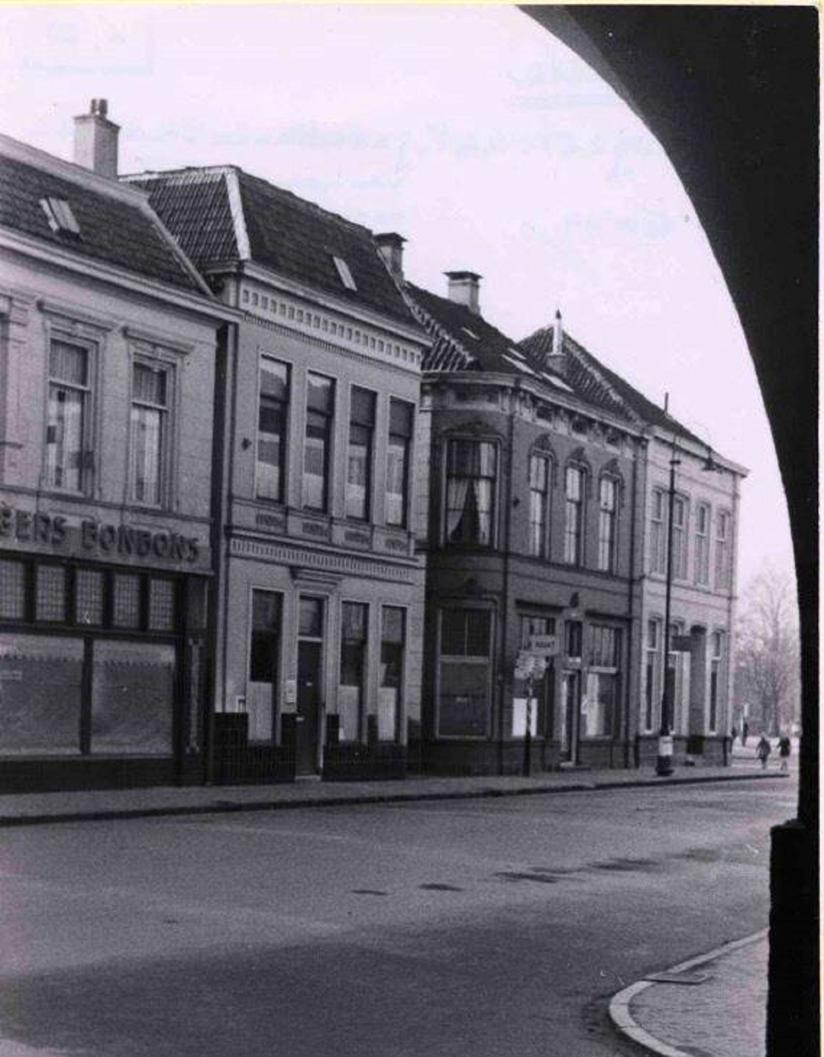 Zuiderhagen 81-91 nu Van Heekplein Huizen rechts zijn afgebroken. Banketbakker Jagers zit daar later en schoenenzaak Theo Borchert in die doorgang naar het van Loenshof, bij de Primark.