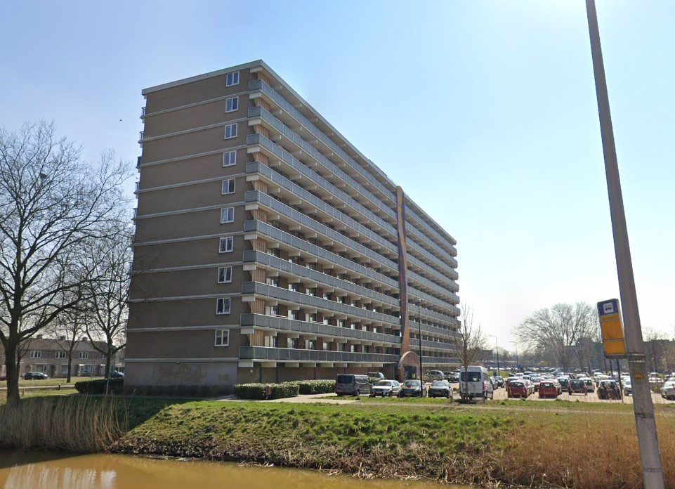 Deze flat wordt het eerst aangepakt, de flat met de huisnummers 2 tot en met 200. Over een half jaar is deze flat vernieuwd. © Domijn