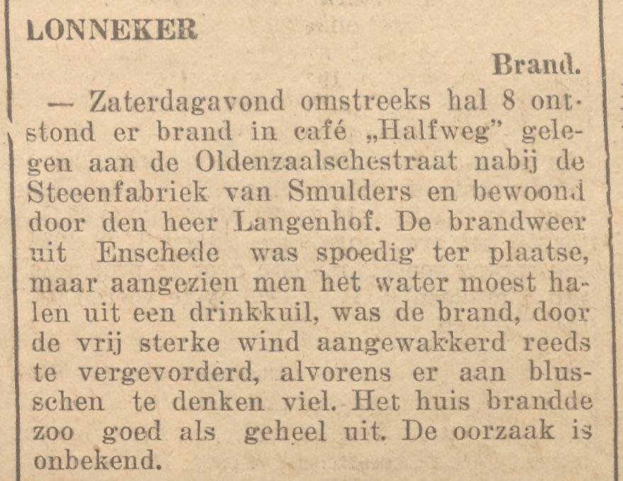 Oldenzaalsestraat 1045 brand cafe Halfweg van Langenhof krantenbericht 26-2-1935