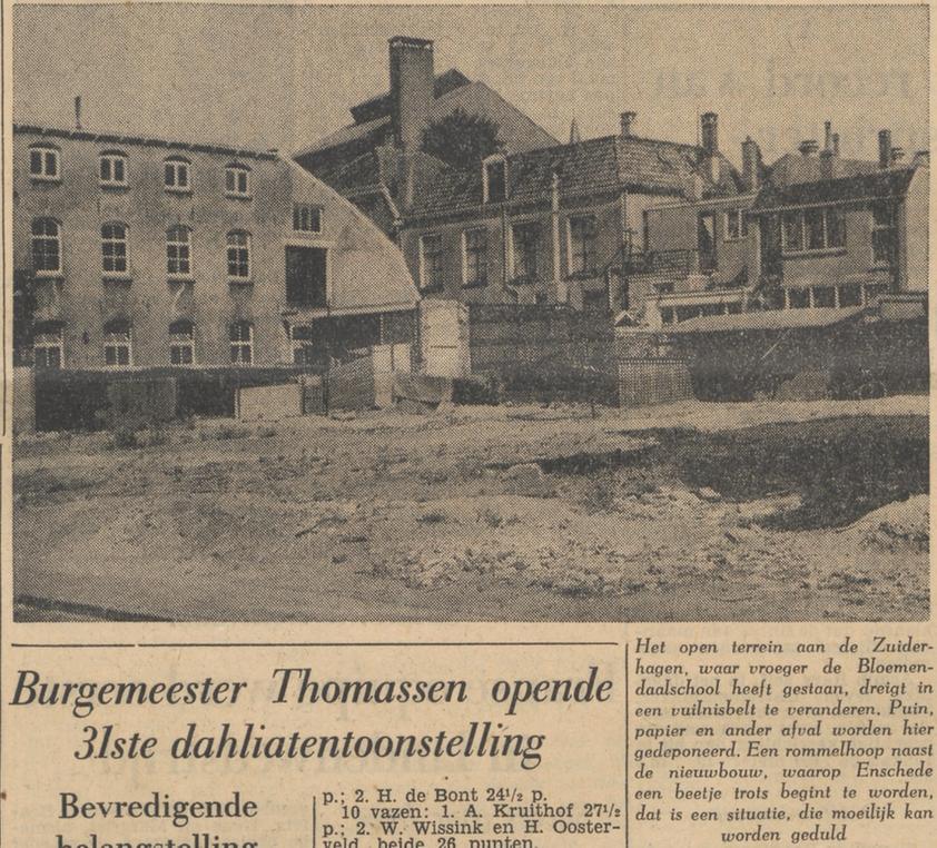 Zuiderhagen 61 vroeger locatie Bloemendaalschool krantenfoto Tubantia 8-9-1958
