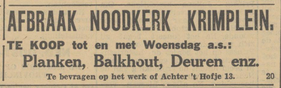Krimplein noodkerk krantenbericht Overijsselsch Dagblad 25-1-1932