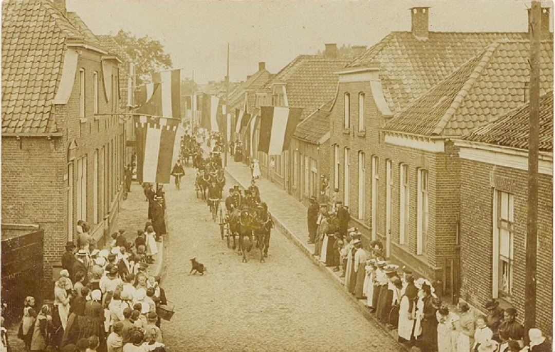 Het is inderdaad de Koningstraat tgv bezoek ZKH Prins Hendrik in een open voertuig. 22 aug. 1903.
