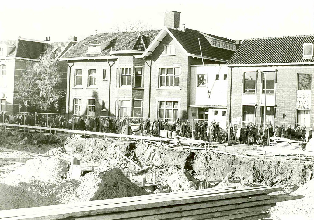 Daar wedr inderdaad het Openbare dienstgebouw de Noordmolen aan de Molenstraat gebouwd. Op de raadfoto te zien: Molenstraat 27 Twentse anti-kernoorlog demonstratie thv Volksuniversiteit. voorgrond bouwterrein gebouw Noordmolen 7-1-1981.