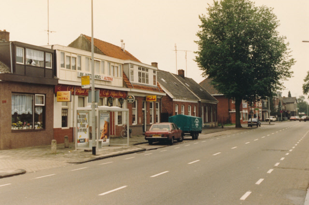 Haaksbergerstraat 283-285 Café biljart Petra met café biljarthandel Altena aan de linkerkant. augustus 1987.jpeg