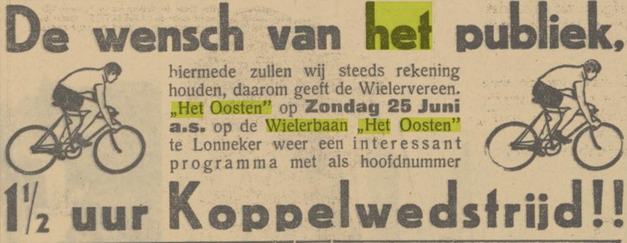 De wielerbaan, „Het Oosten" genaamd, is door de N. W. U. goedgekeurd voor het houden van wedstrijden.