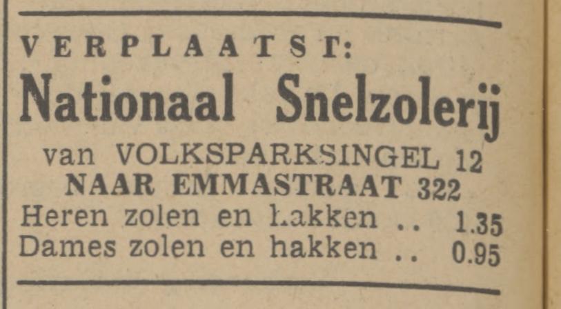 Emmastraat 322 snelzolerij Nationaal advertentie Tubantia 22-11-1939
