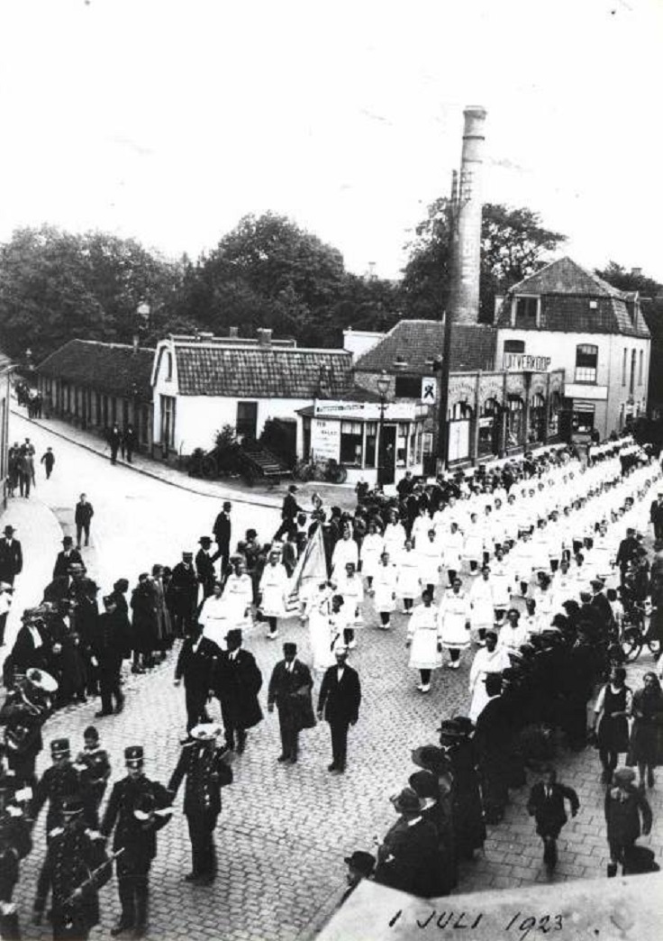 Die foto met de optocht van mensen geeft een prachtig tijdsbeeld. Ook is daarop goed het gebouw met het puntige dak te zien, Het gebouw was van De Zuidmolen. Een stoommolen uit de 19e eeuw met schoorsteen. Maar met name is leuk de rij woninkjes aan de Beltstraat. Dat waren de Möln Huuskes zoals ze in de volksmond genoemd werden. Had niks met De Krim te maken. Er stonden her en der in de stad vele van dit soort huisjes. De vader van mijn aangetrouwde tante is er geboren. Mijn tante sprak er altijd dierbaar over. Burkink, zo heette hij is op jonge leeftijd naar Limburg gegaan, ontmoette er zijn vrouw en kwam voor de oorlog al weer terug. Zijn zoon Herman Burkink is een paar jaar geleden op hoge leeftijd overleden. Hij was ooit hoofd boekhouding bij Polaroid en ook Preases van de centrale kerkenraad van de Nederlandse Hervormde Kerk. Nu PKN. De Mölnhuiskes zijn later als etalage verbouwd voor de meubelzaak van Hassink. De Zuidmolen. Maar in de jaren 60 was het ook nog een manufacturenzaak. Toen ik in 1960 naar de Tuinbouwschool ging heb ik daar met mijn vader een overall gekocht als 12 jarig ventje.