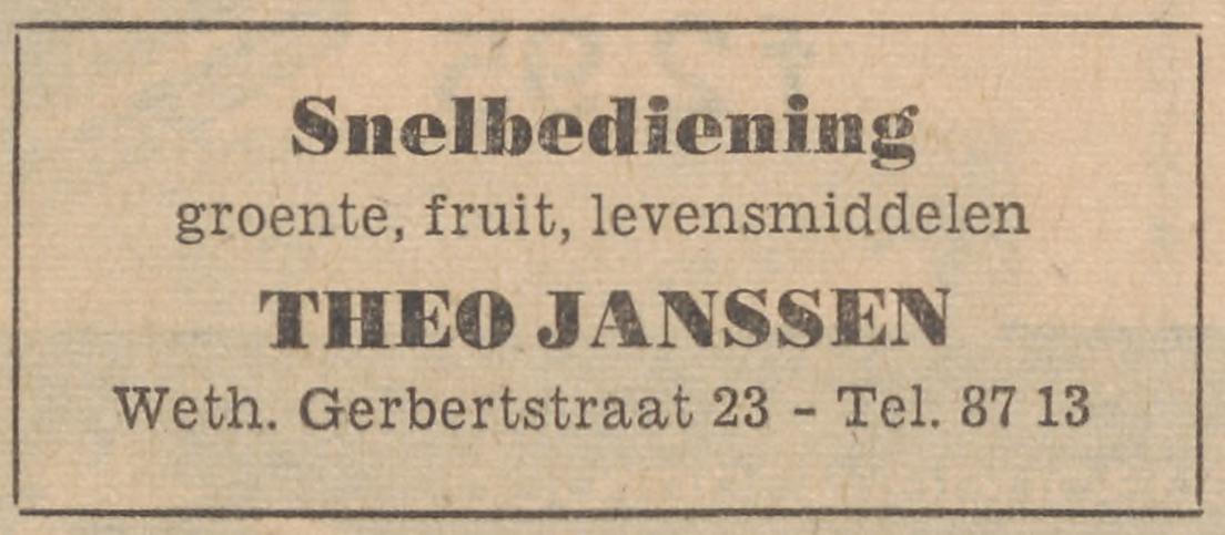 Wethouder Gerbertstraat 23 smelbediening Theo Janssen advertentie Tubantia 9-7-1963