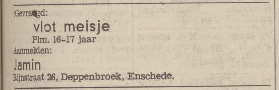 Rijnstraat 26 Deppenbroek Jamin advertentie Tubantia 12-10-1973