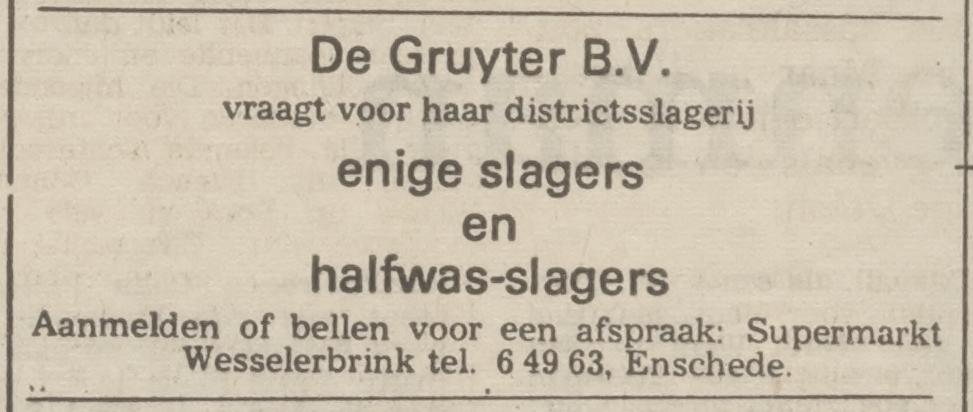 Wesselerbrinklaan Supermarkt De Gruyter advertentie Tubantia 29-3-1974