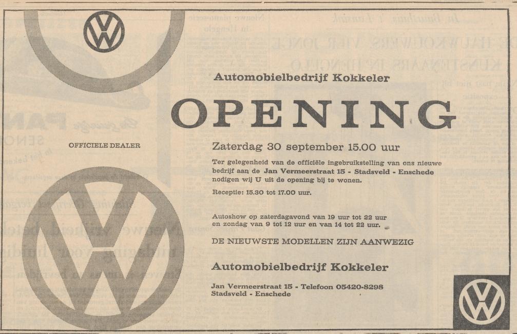 Jan Vermeerstraat 15 Automobielbedrijf Kokkeler advertentie Tubantia 28-9-1961.jpg