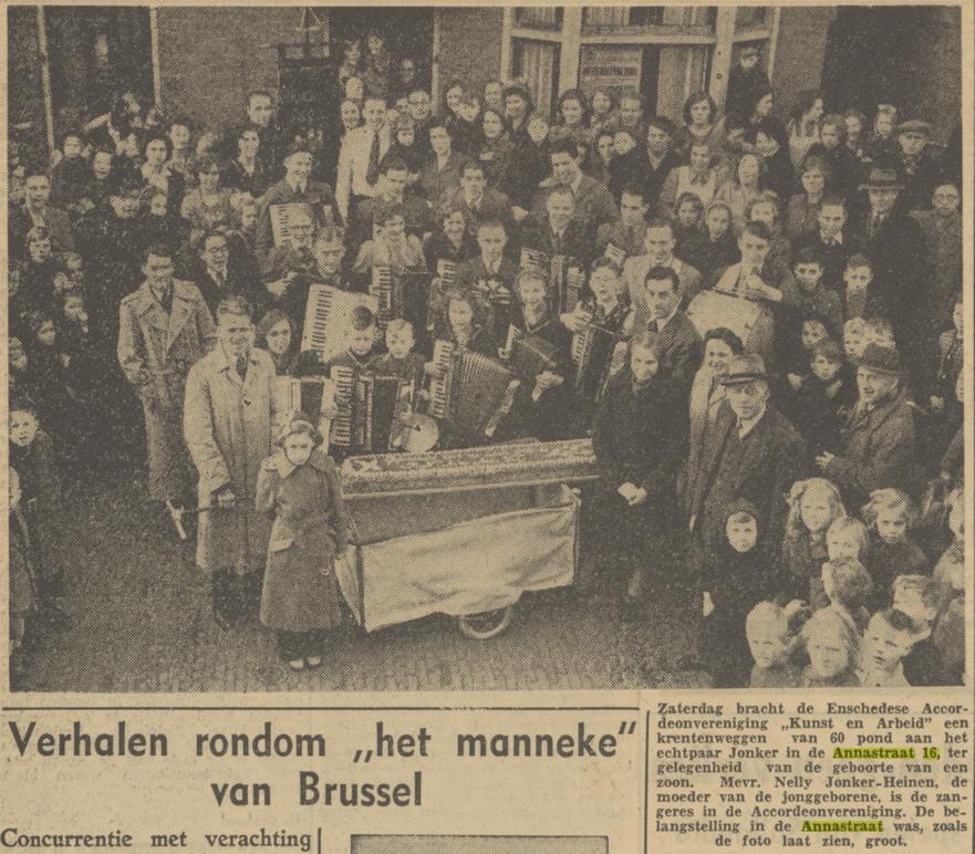 Annastraat 16 Mevr. Nelly Jonker-Heinen krantenfoto Tubantia 26-2-1951.jpg