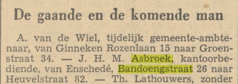 Asbroek J.H.M. kantoorbediende Bandoengstraat 26 krantenbericht Bredasche Courant 6-11-1939