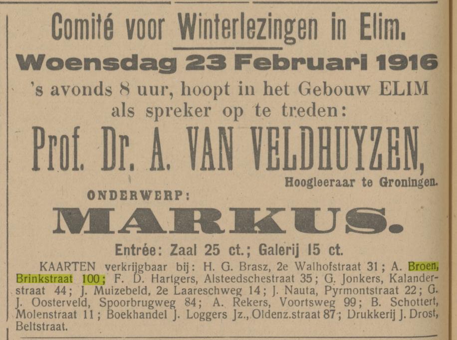 Broen A. propagandist Brinkstraat 100 advertentie 22-9-1916 en 26-4-1930