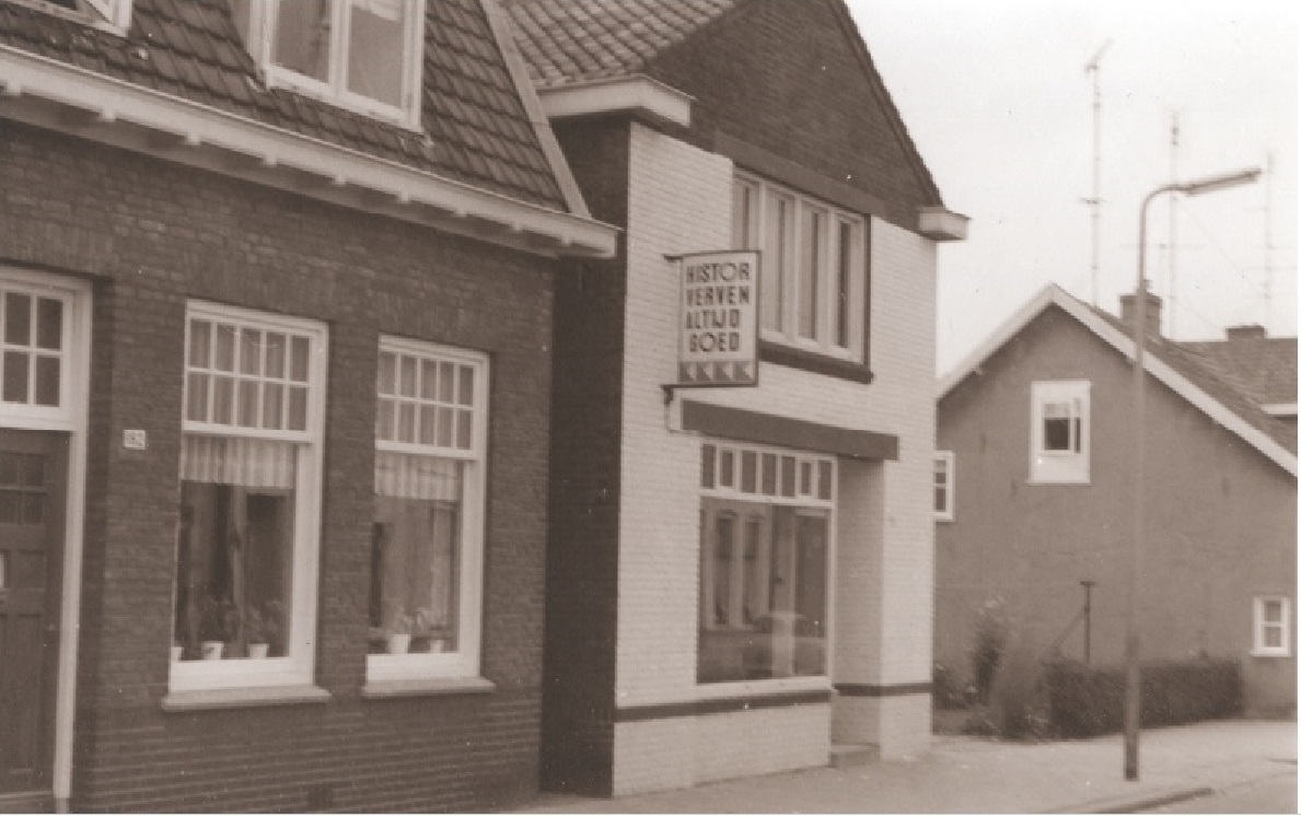Brinkstraat 180 witte huis was Schildersbedrijf Waaijer gevestigd, tot 1966 was dit de kruidenierszaak van Willem Hof en eerder Centra Kruidenier R. Niessink. foto 1967.jpg