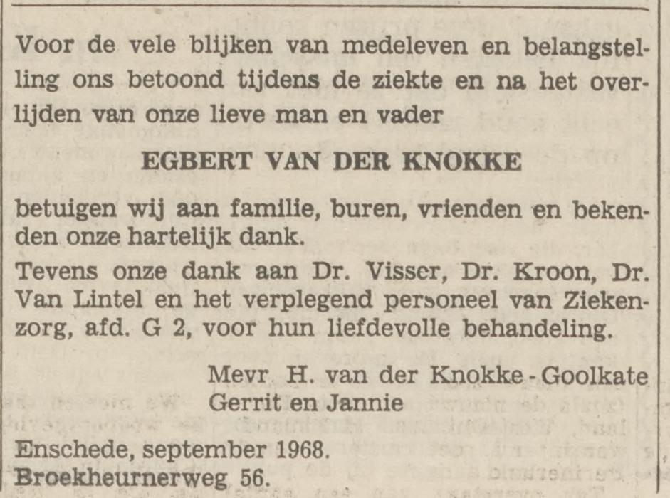 Broekheurnerweg 56 Egbert van der Knokke advertentie Tubantia 1-10-1968.jpg