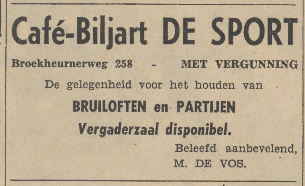 Broekheurnerweg 258 M. de Vos cafe De Sport advertentie Tubantia 19-4-1958.jpg
