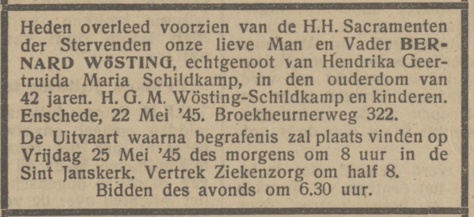 Broekheurnerweg 322 Bernard Wosting overlijdensadvertentie Het Parool 24-3-1945.jpg