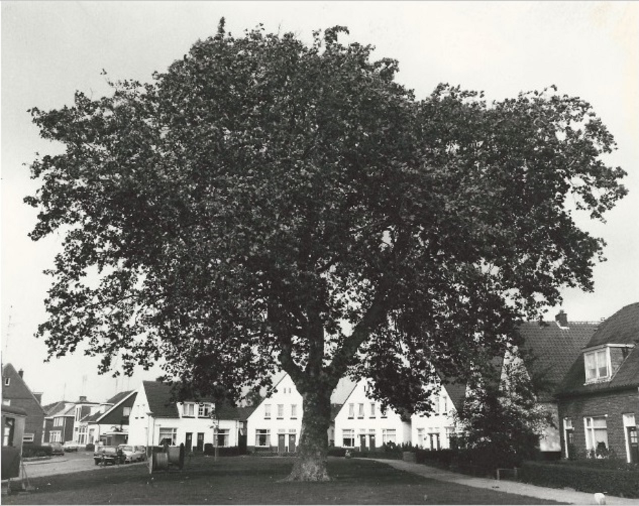 Buitenweg 26-32 links plantsoentje in de wijk Pathmos met boom.jpg