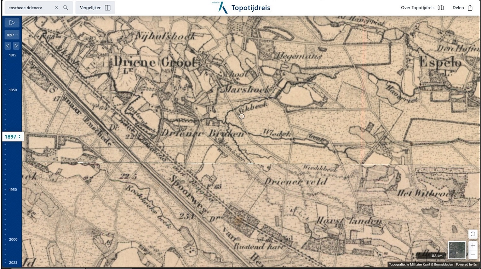 Usselerbeek heet nu Zonnebeek topotijdreis 1885 Usselerrietweg