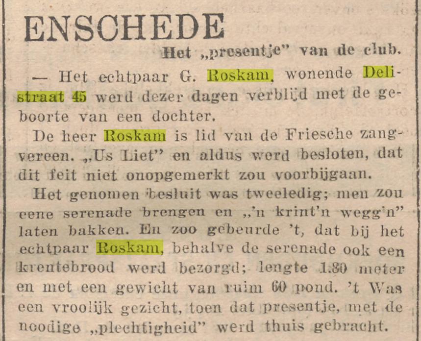 Roskam G. timmerman Delistraat 45krantenbericht 17-8-1935