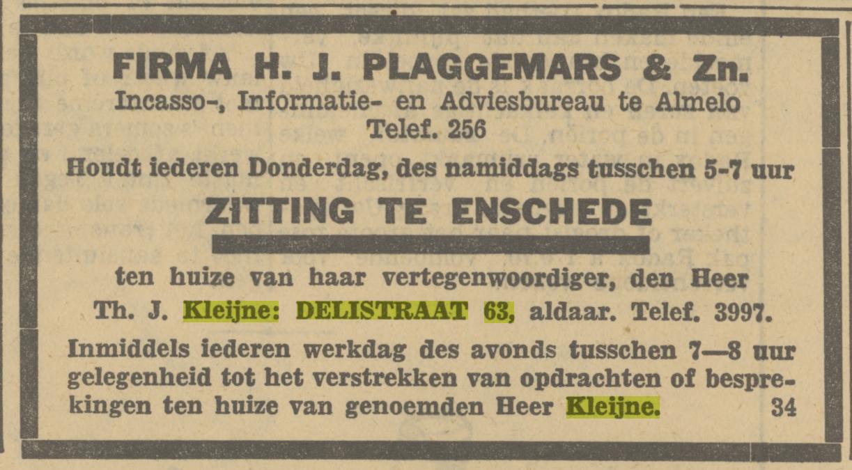 Delistraat 63 Th.J. Kleijne vertegenwoordiger advertentie Tubantia 14-7-1933.jpg