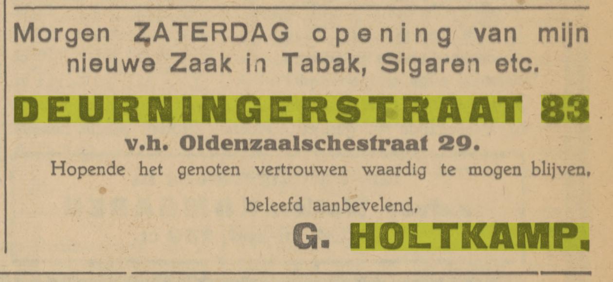 Holtkamp G. brievenbesteller Deurningerstraat 83 advertentie 3-5-1926 en 9-7-1926