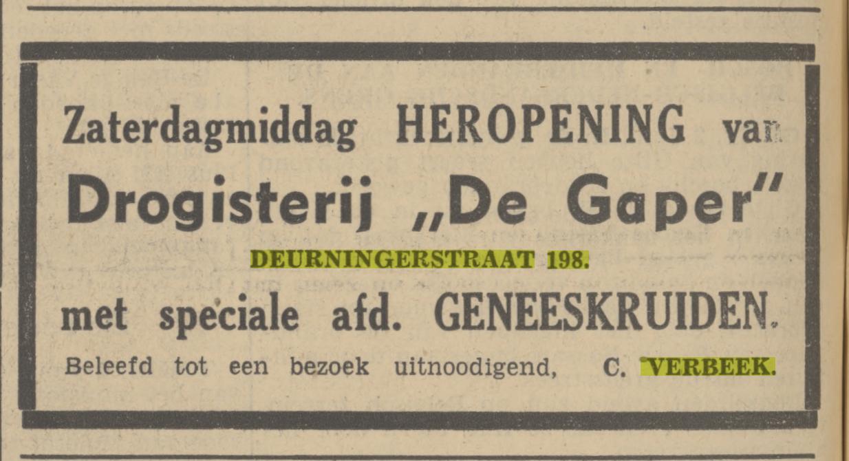 Deurningerstraat 198 drogisterij De Gaper C. Verbeek krantenbericht Tubantia 5-6-1939.jpg