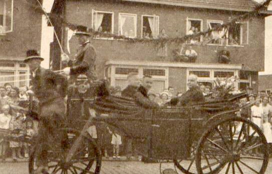 Deurningerstraat 271-273. koets met pastoor Hartman van de Mariakerk ivm viering van zijn 25-jarig priesterjubileum aug. 1938.jpg