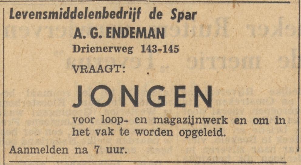 Endeman A.G. Drienerweg 145 advertentie 22-1-1958