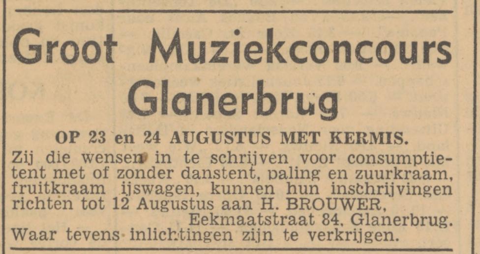 Brouwer H. fabrieksarbeider Eekmaatstraat 84 advertentie 1-8-1947