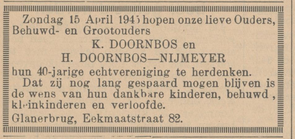 Doornbos K. grondwerker Eekmaatstraat 82 advertentie 14-4-1945