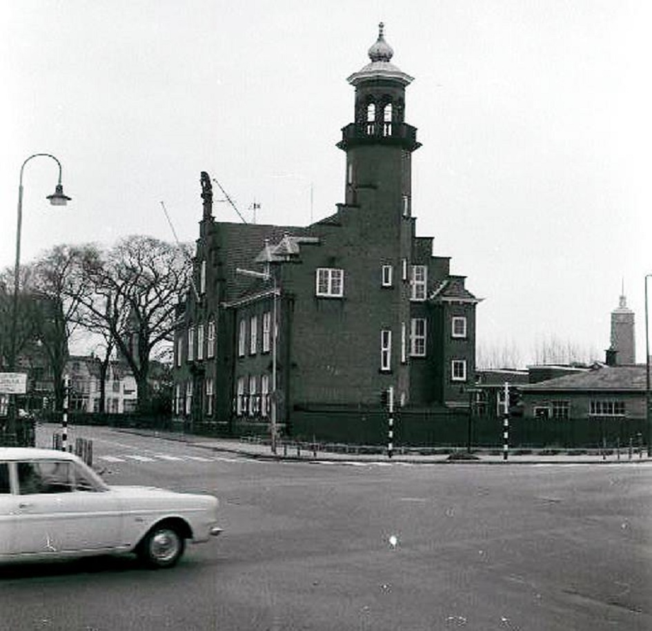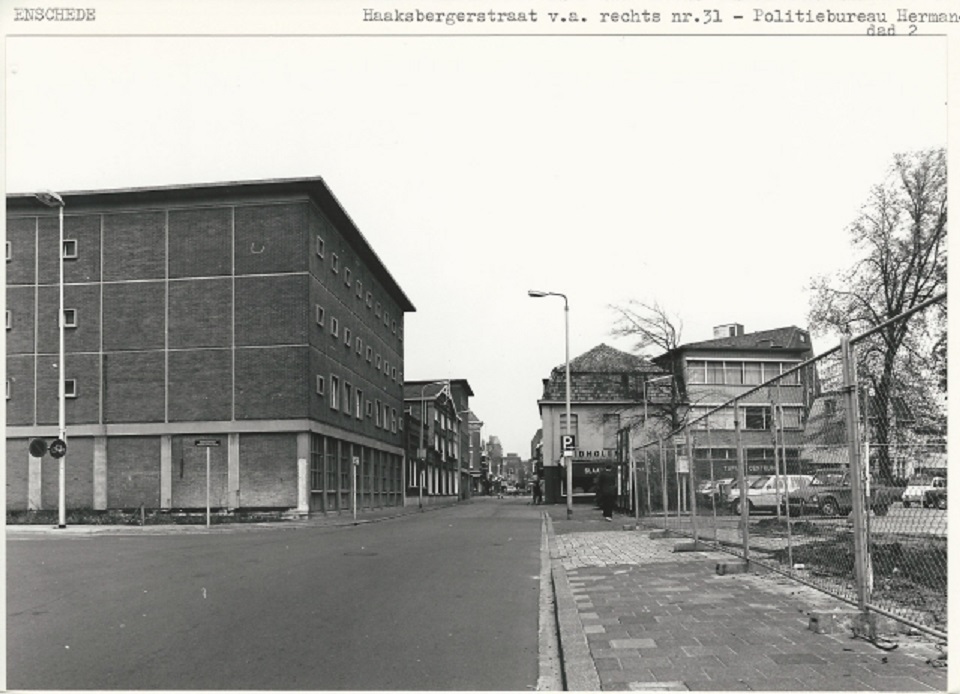 Haaksbergerstraat 35  politiebureau, rechts de C F Klaarstraat School voor Nijverheid en Handel later ook Lyceum. 1955.png