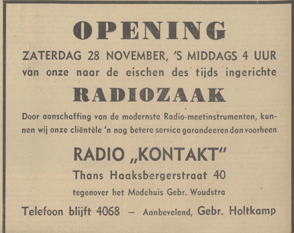 Haaksbergerstraat 40 Radio Kontakt Gebr. Holtkamp advertentie Tubantia 27-11-1936.jpg