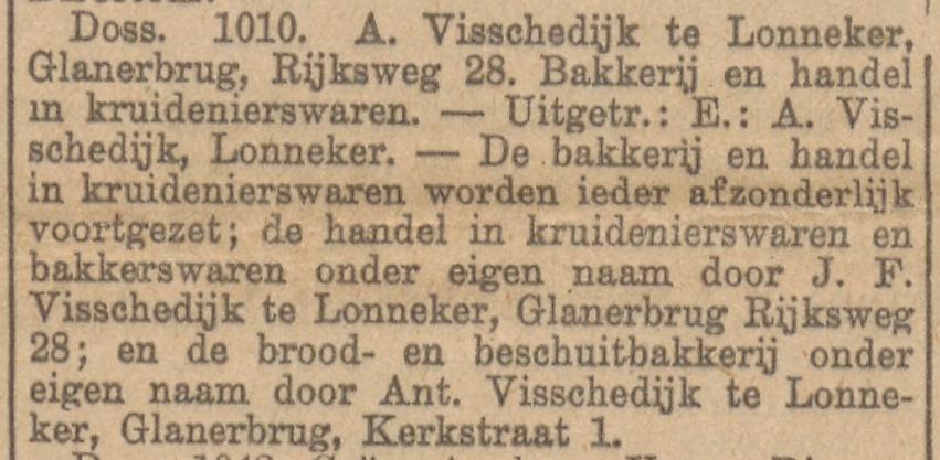 Kerkstraat 1 Glanerbrug Ant. Visschedijk broodbakkerij krantenbericht 1-7-1931.jpg