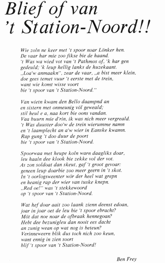 Mooi Twents gedicht van Station Noord.