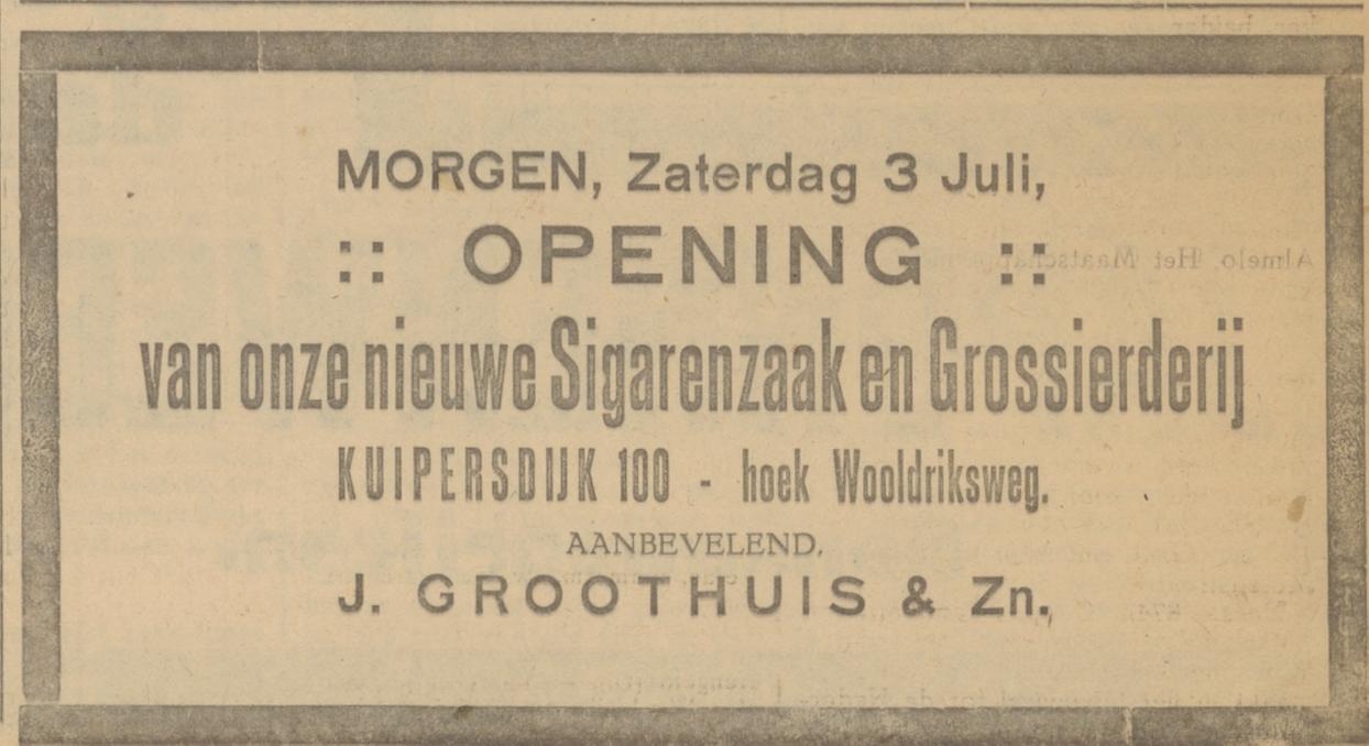 Groothuis C.J. koopman Kuipersdijk 100a advertentie 2-7-1926