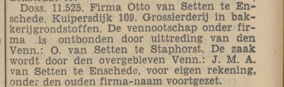 Setten J.M.A. van vertegenwoordiger Kuipersdijk 109 advertentie 15-8-1939