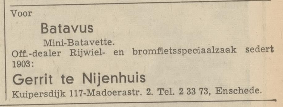 Nijenhuis B. te rijwielhandelaar, garagehouder Kuipersdijk 117 advertentie 25-6-1930 en 5-11-1941