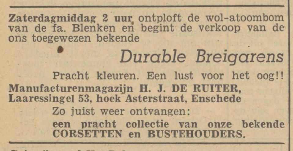 Ruiter H.J. de manufact. Laaressingel 53 advertentie 10-2-1948 en 5-1-1951