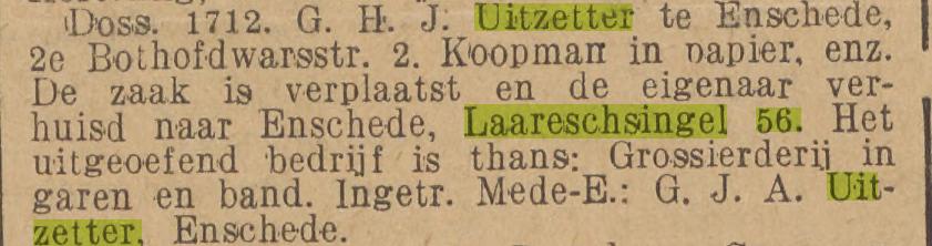 Uitzetter G.H.Joh. grossier in garen en band Laaressingel 56 krantenbericht 19-1-1929