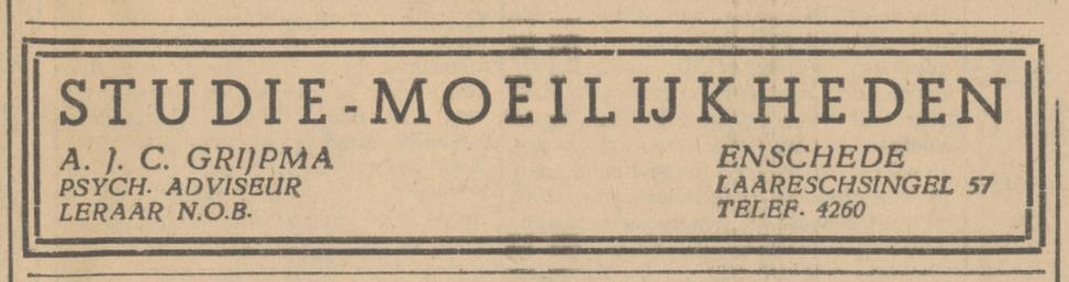 Grijpma A.J. onderwijzer Laaressingel 57 advertentie 22-12-1943