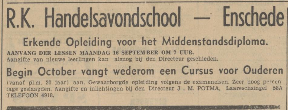 Potma Joh.M. onderwijzer Laaressingel 58 advertentie 14-9-1940