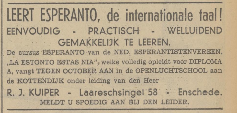 Kuiper R.J. hoofd openluchtschool Laaressingel 58 advertentie 28-9-1938