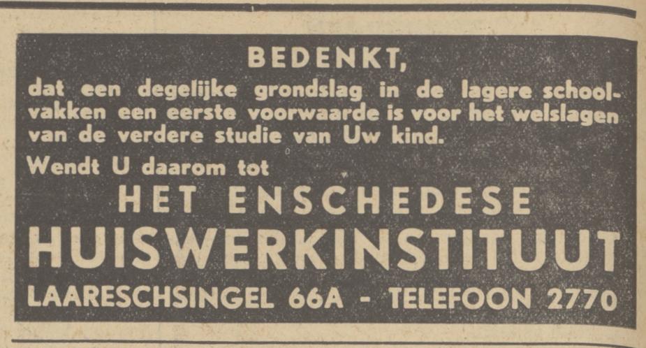 Krediet H. onderwijzer en Tw. huiswerk instituut Laaressingel 66 advertentie 21-12-1939
