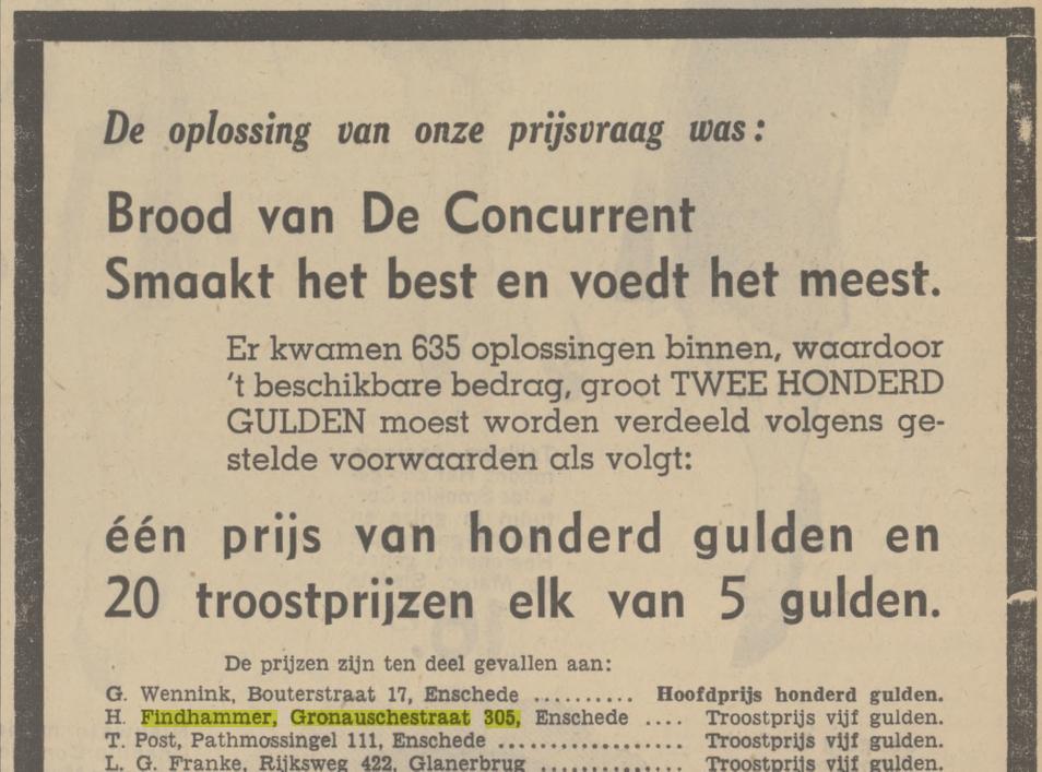 Findhammer H.J.M. bedrijfsleider Gronausestraat 305 advertentie 9-4-1938