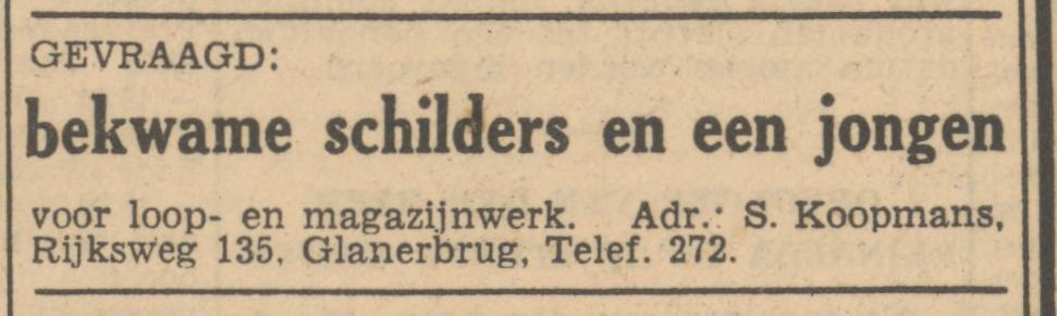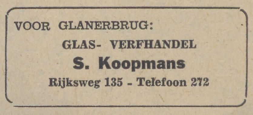 Rijksweg 135 Glas- en Verfhandel S. Koopmans Rijksweg 135 advertentie Tubantia 15-3-1958.jpg