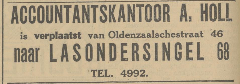 Holl A. accountant, leeraar boekhouden M.O. Lasondersingel 68 advertentie 16-8-1933 en 30-10-1969