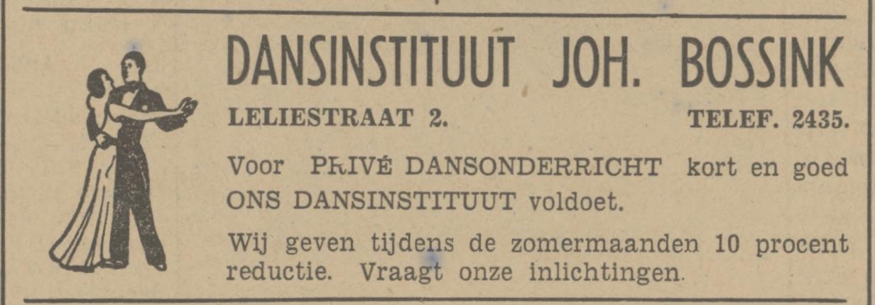 Bossink J.H. dansinstituut Leliestraat 2 advertentie 5-3-1941